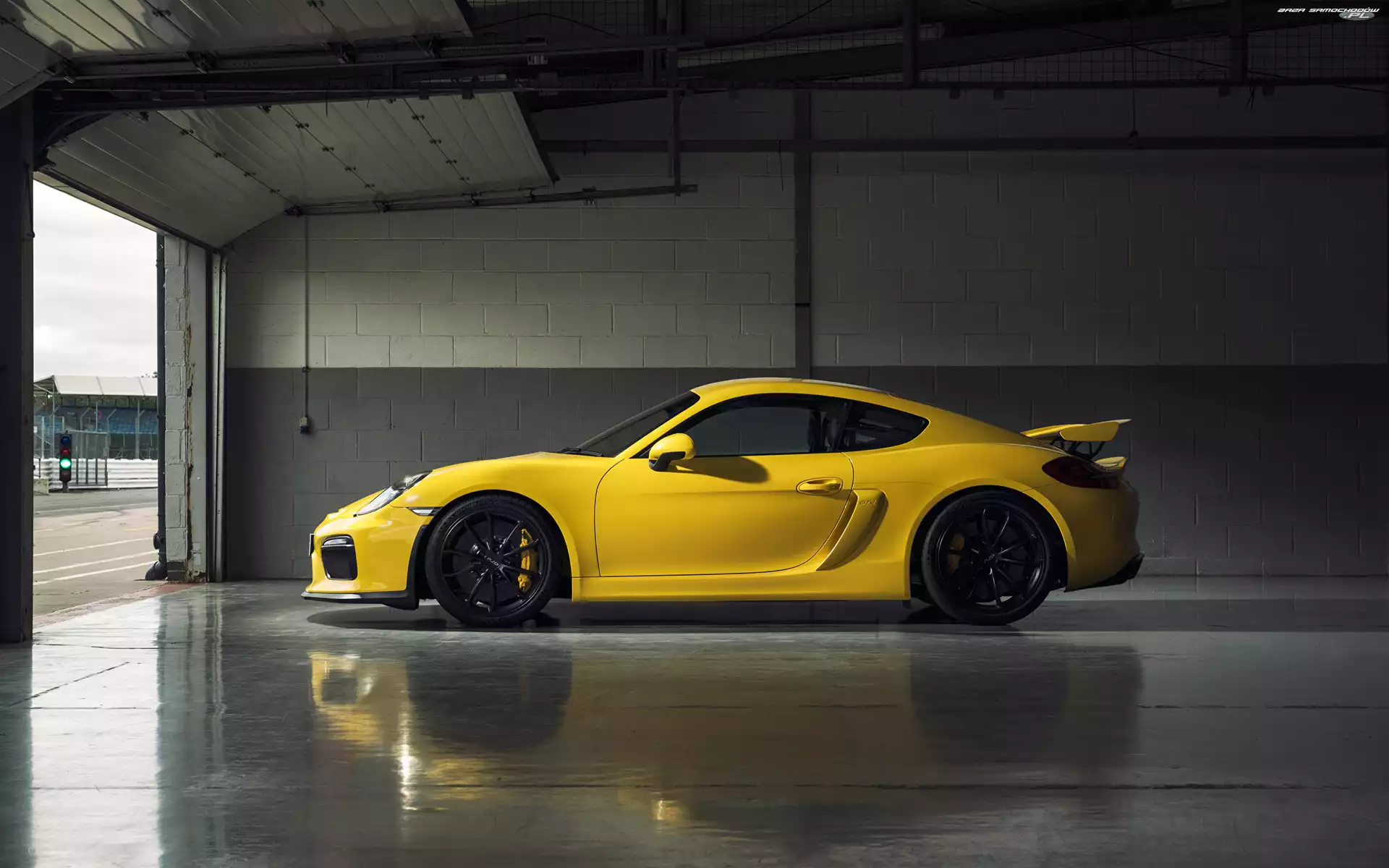 Samochód: Bok, Żółte, Porsche Cayman GT4