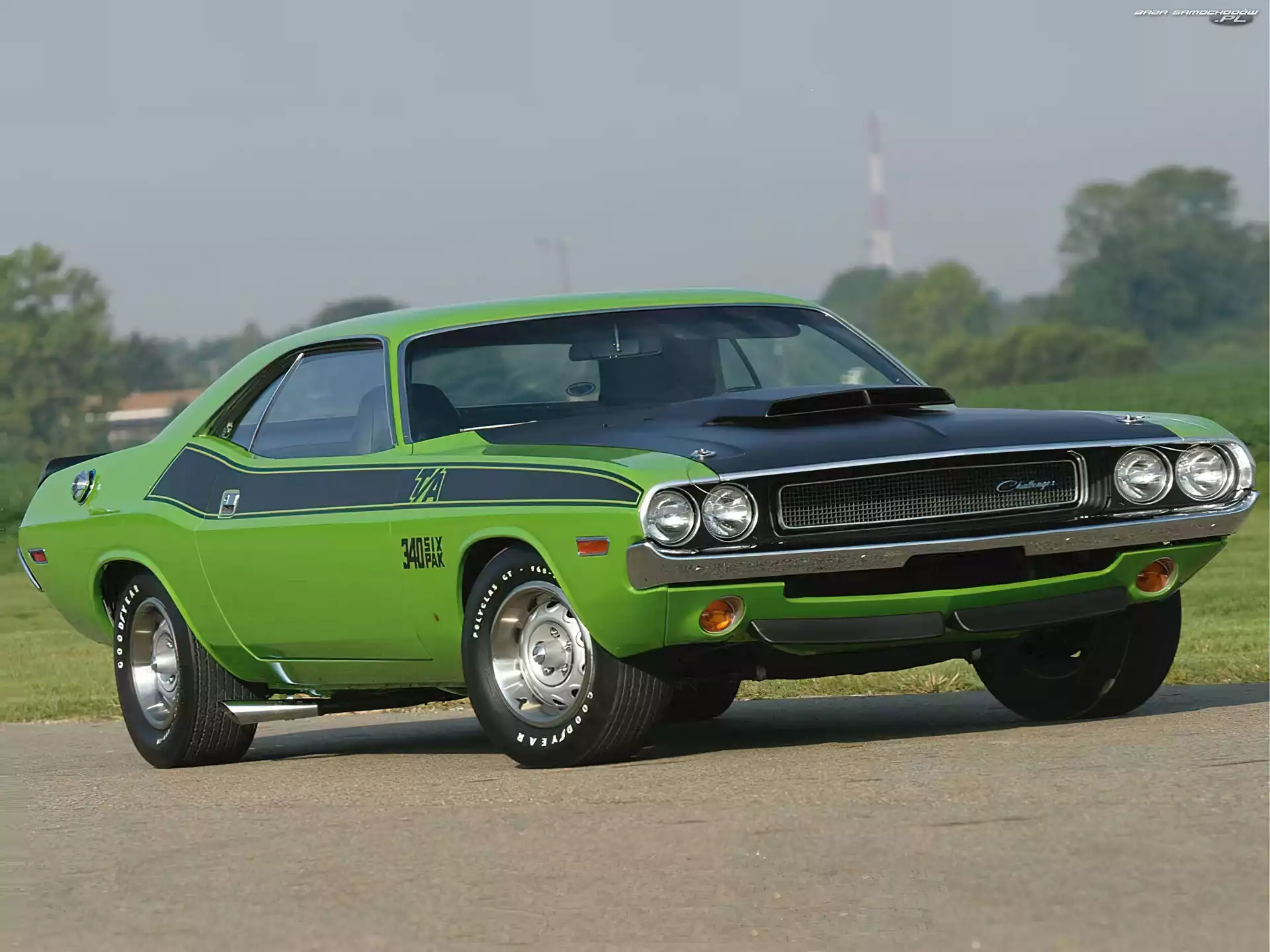 Samochód: Zielony, Dodge Challenger, Maska, Wlot