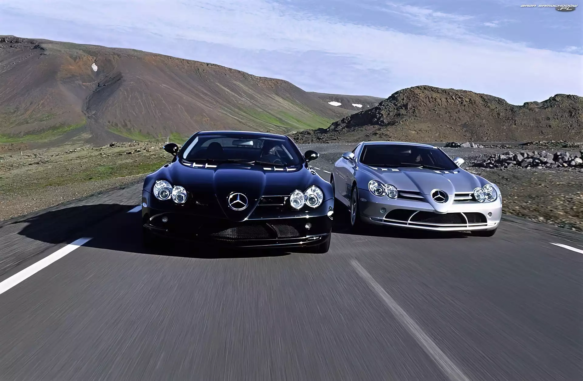 Mercedesy SLR, Czarny, Srebrny- Zdjęcia samochodów